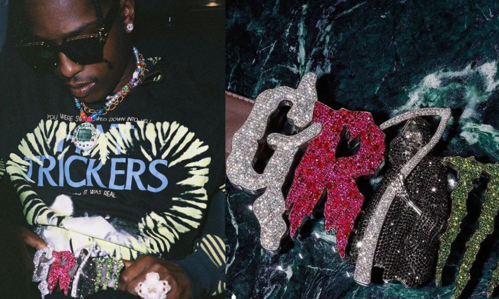 Check out A$AP Rocky’s GRIM belt buckle, designed by Alex Moss in New York and priced at $322,000 USD.