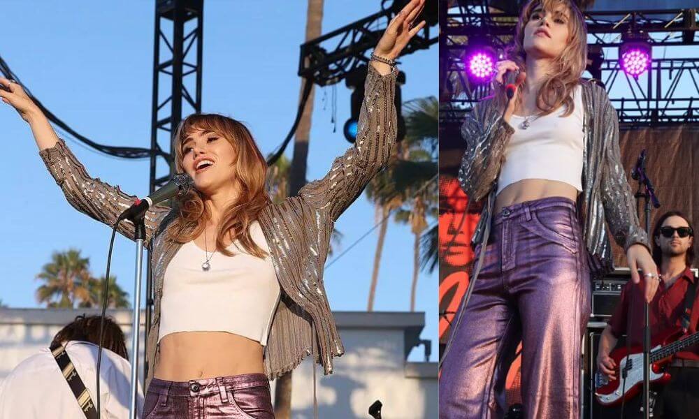 Suki Waterhouse showed off her toned midsection during her concert at Hollywood Forever Cemetery in Los Angeles.